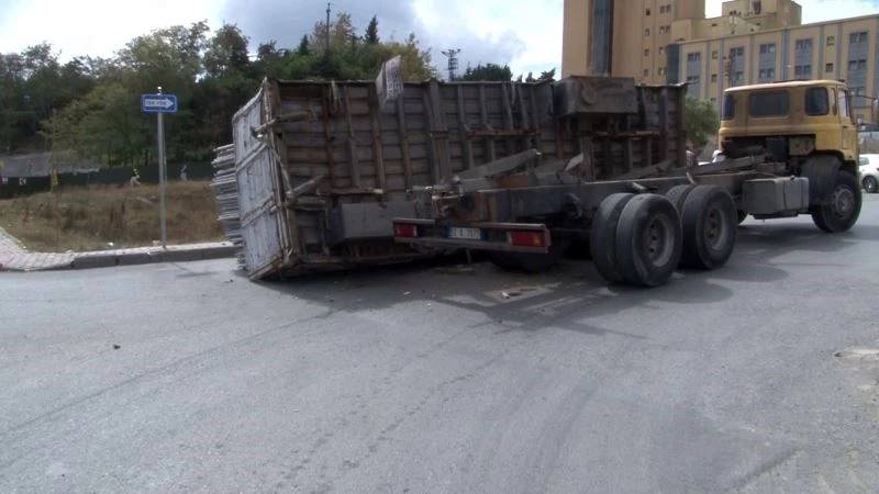 Arnavutköy’de demir yüklü kamyonun kasası devrildi, faciadan dönüldü
