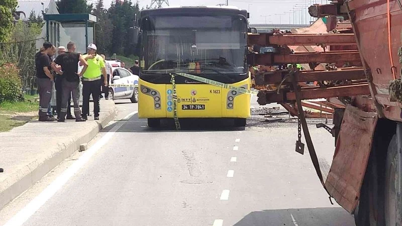 Edinilen bilgilere göre olay Eski Edirne Asfaltı Arnavutköy istikameti Sincanlar otobüs durağında yaşandı. Arnavutköy istikametine seyreden 34 TP 7841 plakalı İETT otobüsü, yolcu almak için durağa yanaştı. Bu sırada aynı istikamette seyreden demir taşıyan 48 PD 513 tır sürücüsü otobüsün sol tarafında çarptı. Tırın kasasında yüklü demirler ise düşerek otobüse saplandı.