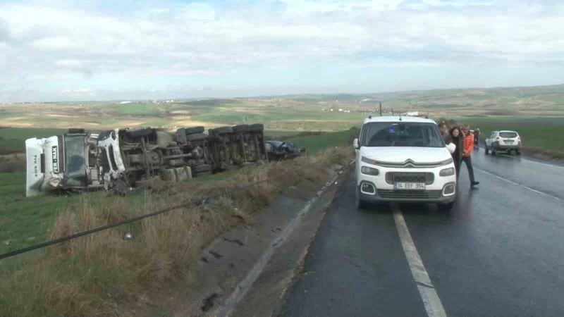 Arnavutköy’de direksiyon hakimiyetini, kaybeden hafriyat kamyonu sürücüsü, karşı şeritten gelen otomobile çarptı. Kaza sonucunda araçlar tarlaya uçarak durabilirken kazada otomobilde bulunan 1 kişi yaralanarak hastaneye kaldırıldı.