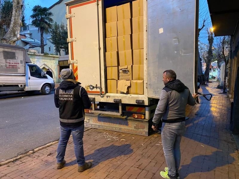 İstanbul’un Arnavutköy ilçesinde nakliye kamyonuna düzenlenen operasyonda, 6 milyon 400 bin dal sigara ele geçirildi. Kaçak tütün nakliyatında kullanılan kamyona el konulurken, sürücüsü gözaltına alındı.