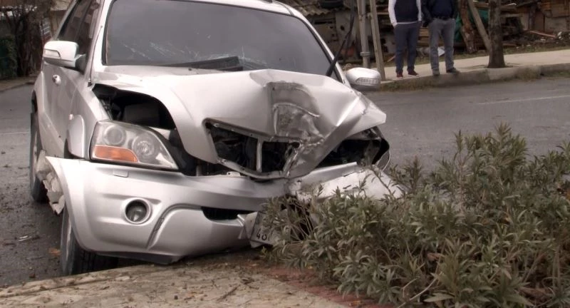 Arnavutköy’de sürücüsünün kontrolünden çıkan cip, refüjdeki ağaca çarparak durdu.