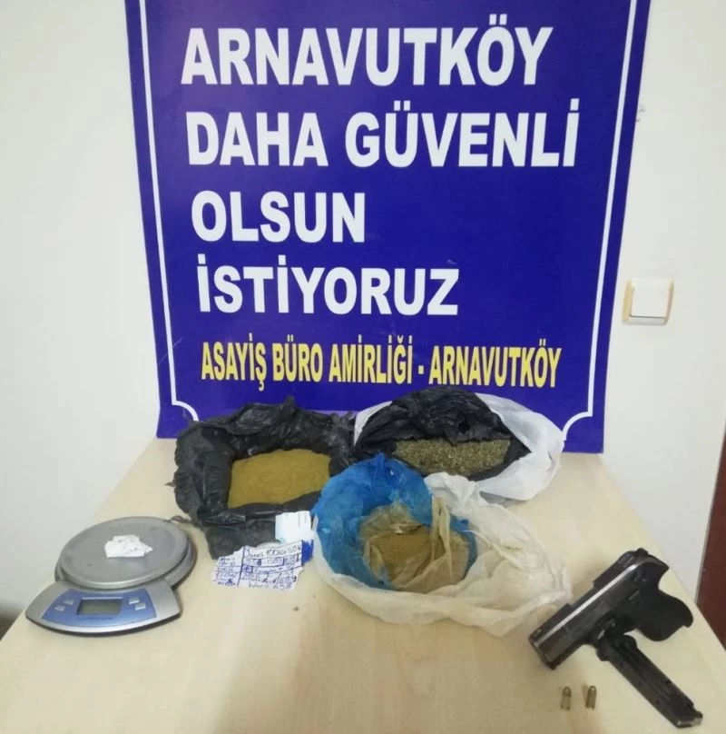Arnavutköy Asayiş Büro Amirliği Ekipleri tarafından takibe alınan Ö.B. isimli şahsın ikametine gece saatlerinde operasyon düzenlendi. Düzenlenen operasyonda ev içerisinde arama yapan ekipler evin farklı bölgelerine saklanmış şekilde 1 buçuk kilo narkotik madde, 1 adet ruhsatsız silah ve 1 adet hassas terazi ele geçirdi.