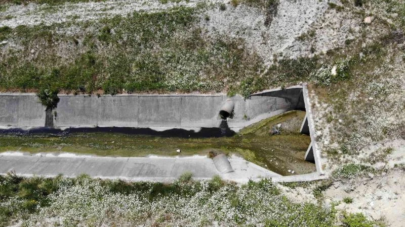Arnavutköy’de siyah akan dere korkuttu, alan havadan görüntülendi