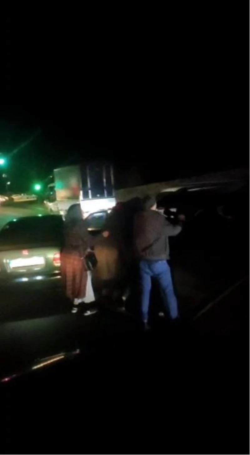 Görüntülerde ikisi kadın dört kişinin araçta yalnız bulunan sürücüye saldırdığı araya giren vatandaşların ise kavgayı ayırmaya çalıştığı kaçan sürücünün ise bir kadına çarparak yere düşmesine neden olduğu görülüyor.