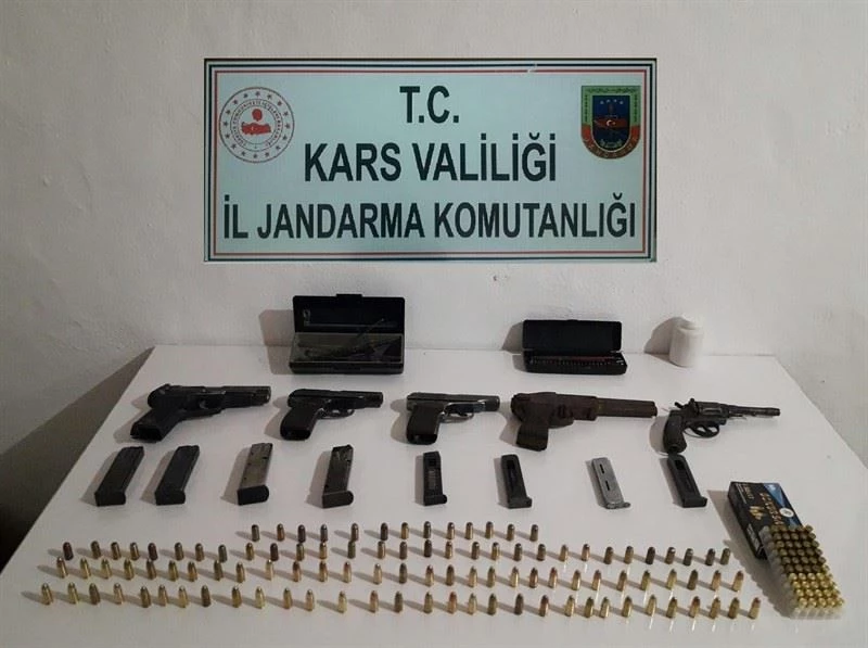 Kars İl Jandarma Komutanlığınca yapılan çalışmalarda ismi açıklanmayan 1 kişinin evinde silah ve mühimmat olduğu bilgisi alındı. Bunun üzerine harekete geçen jandarma, Arpaçay’da önceden adresi belirlenen eve operasyon düzenledi. Jandarma ekiplerince düzenlenen operasyonda şüphelinin evinde yapılan aramada, 5 adet ruhsatsız tabanca, 8 adet tabanca şarjörü, 154 adet mühimmat ve çok sayıda tabanca parçası ele geçirilerek muhafaza altına alındı.