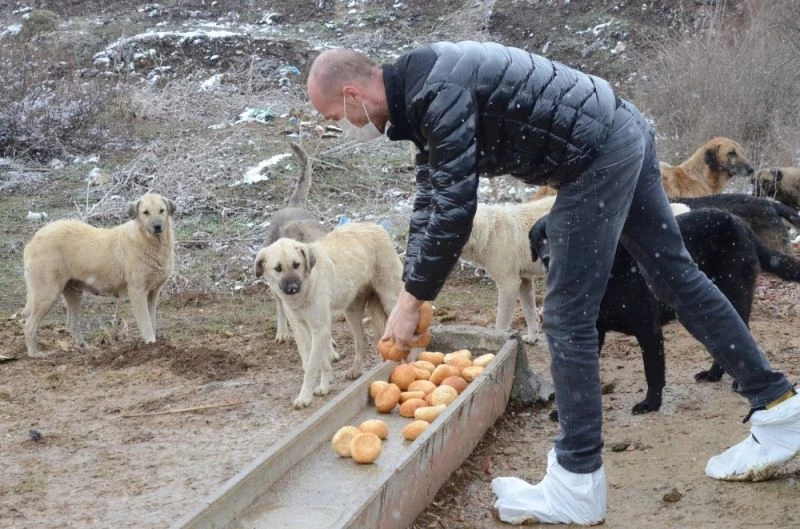 Karlı ve soğuk hava koşullarında yiyecek bulmakta güçlük çeken sokak hayvanlarına yardım eli uzatılmaya devam ediyor.