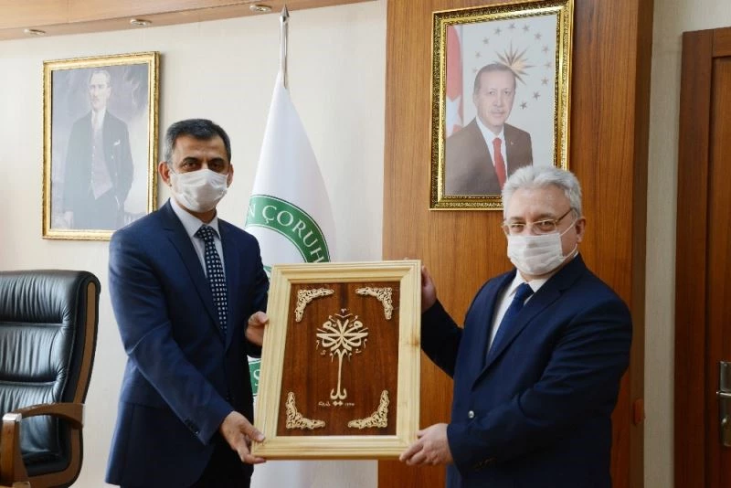 Prof. Dr. Fahrettin Tilki, Artvin Çoruh Üniversitesinin yeni dönem rektörü olarak atanan Prof. Dr. Mustafa Sıtkı Bilgin’e tebriklerini sunarak Rektörlük cübbesini giydirdi. Prof. Dr. Mustafa Sıtkı Bilgin de, Prof. Dr. Fahrettin Tilki’ye bugüne kadar yapmış olduğu hizmetlerinden dolayı ahşap oyma hat sanatı tablo hediye etti.
