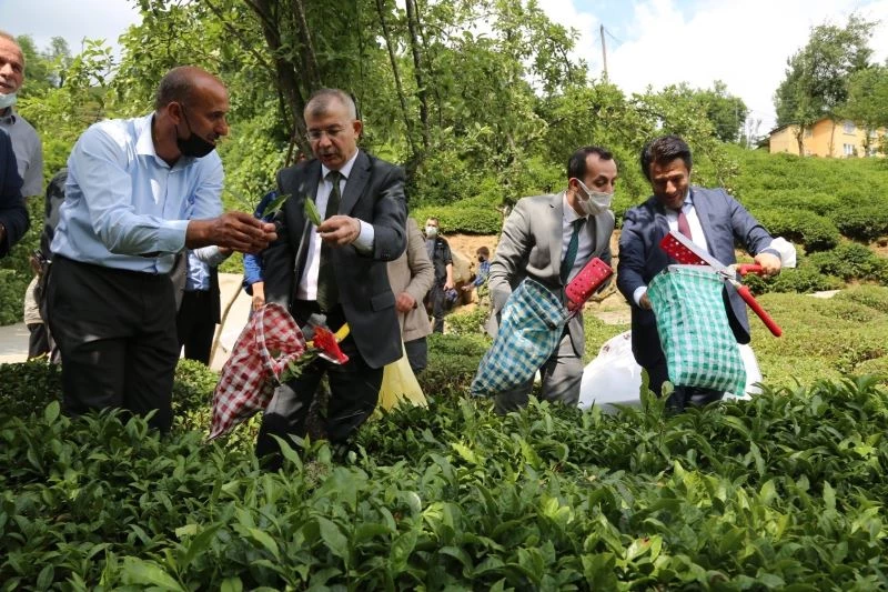 Vali Doruk, daha sonra beraberindekilerle bir çay bahçesine giderek çay hasadı yaptı. Doruk, son olarak Muratlı Köyüne giderek Murat Çay Farikasında incelemelerde bulunup yetkililerden bilgi aldı.