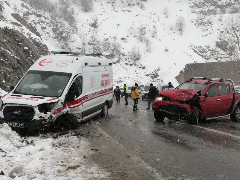 Artvin’de hasta taşıyan ambulans karşı yönden gelen kamyonetle çarpıştı. Çarpmanın etkisiyle kamyonet içinde bulunan iki kişi yaralandı.