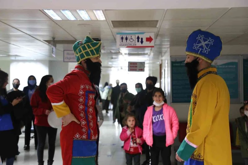 Artvin Gençlik Merkezi Tiyatro Topluluğu 7-13 Nisan Dünya Sağlık Haftası nedeniyle hastanede tedavi gören çocuklar için "Hacivat Karagöz" isimli tiyatro oyununu sahneledi.