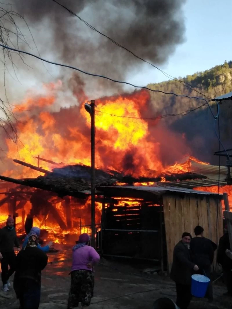 Artvin´in Borçka ilçesine bağlı Zorlu köyünde bir kereste doğrama atölyesinde yangın çıktı. Korku dolu anların yaşandığı yangında kereste atölyesinin yanı sıra bir ahır ve bir merek kullanılamaz hale geldi.