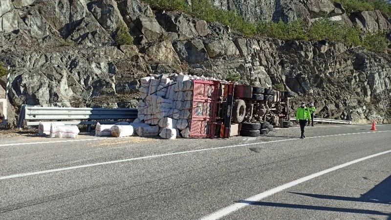 Artvin-Borçka karayolunun 25. kilometresinde saman yüklü tır devrildi. Sürücünün hafif yaralandığı kazada samanlar çevreye saçıldı.