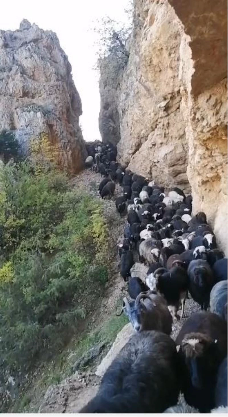 Artvin’de küçükbaş hayvan besiciliği yapan sürü sahipleri zorlu coğrafyada hayvanlarını dar geçitten geçirmek zorunda kalıyor. Otlağa gitmek için kullandıkları geçitler ilginç görüntülerin ortaya çıkmasına neden oluyor.