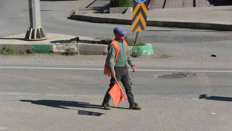 Artvin’de karayolu alt yapı çalışması yürüten bir şirkette çalışan Şadi Özpehlivan, araçların geçişlerini orkestra şefi gibi yönetiyor. Elindeki uyarı bayrağını baton gibi kullanarak araçların durup geçmelerini sağlayan Özpehlivan, kentte fenomen haline geldi.