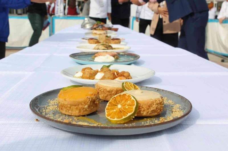 ‘Sinop Lezzetleri’ programı ikinci gününde birbirinden değişik hazırlanan tatlarla lezzetlendi. Öğrenciler Arası Yemek Yarışması, Geleneksel Sinop Lezzetleri ve Sinop Lezzetleri olmak üzere 3 farklı kategoride yarışan katılımcılar birincilik için hünerlerini sergiledi. Birbirinden farklı lezzetlerin hazırlandığı mutfaktan yöresel mantı, tirit, palamut dolması gibi yemeklerin dışında balıklı mantı, hamsili pizza gibi farklı lezzetler de üretildi.