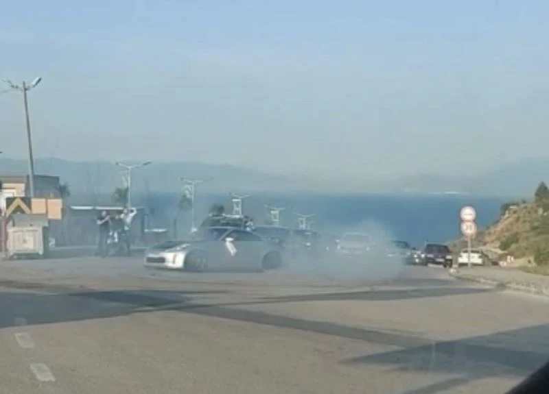 Olay, Mudanya ilçesi Yıldıztepe Mahallesi’nde meydana geldi. Edinilen bilgiye göre, düğün konvoyunda bulunan spor otomobil, trafiğin ortasında diğer araçlara aldırış etmeden drift yaptı. Onlarca aracın beklemesine aldırış etmeden asfaltta dumanlar çıkararak dönmeye tehlikeli hareketler yapmaya başladı. Pişkin sürücü trafiği tehlikeye atarken diğer sürücüler panik dolu anlar yaşadı.
