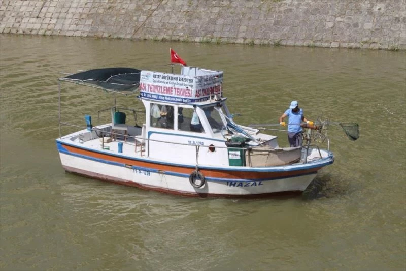 HATAY (AA) - Antakya'nın şehir merkezinden geçip Akdeniz'e dökülen Asi Nehri, tekne ile temizleniyor.