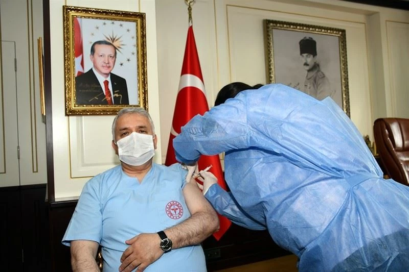 Vali Aziz Yıldırım, kendisine aşı sırasının gelmesinin ardından korona virüs ilk doz aşısını makamında oldu. Vali Yıldırım, aşı sırası gelen vatandaşların randevularını alarak aşılarını yaptırmaları çağrısında bulunarak pandeminin en kısa sürede son bulmasını diledi.