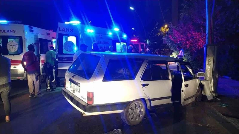 Aşırı alkollü sürücü aydınlatma direğine çarptı; 2 yaralı