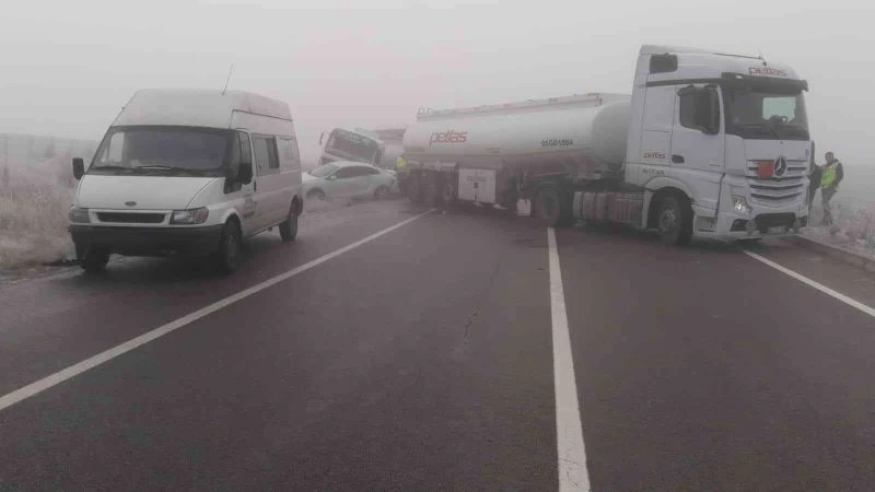 Aşırı buzlanma ve sis nedeniyle çok sayıda araç birbirine girdi