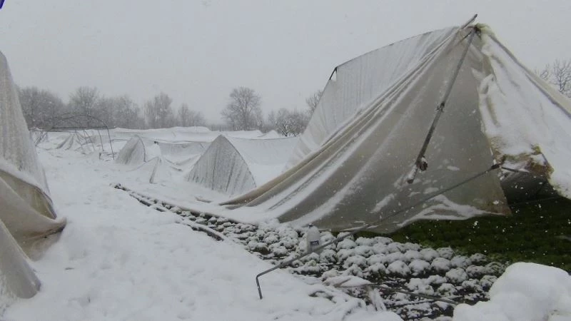 Bursa’nın İnegöl ilçesinde kar yağışı sebebiyle bir çok sera yıkıldı. Seraların yıkılmasıyla mahsuller kar altında kaldı.