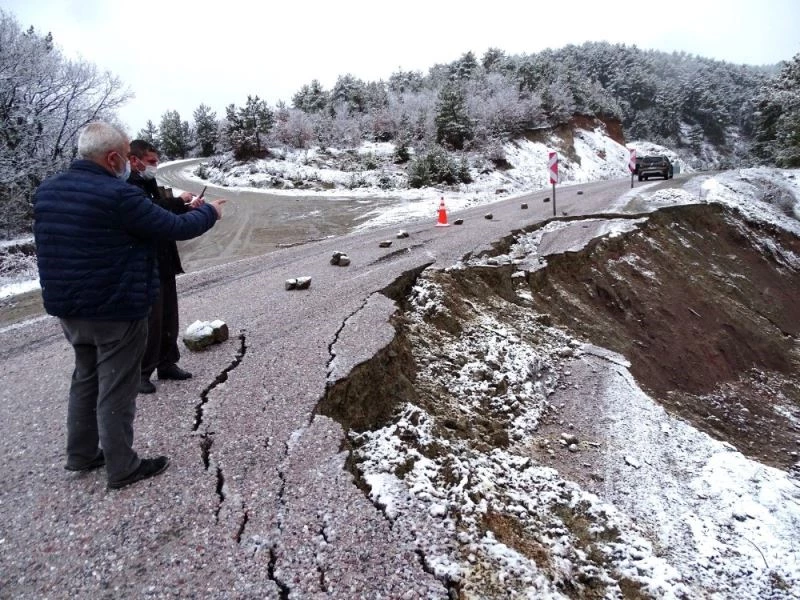 Kütahya’nın Hisarcık ilçesine bağlı Karaağıl köy yolunda aşırı yağış sonucu göçük ve derin çatlaklar meydana geldi.
