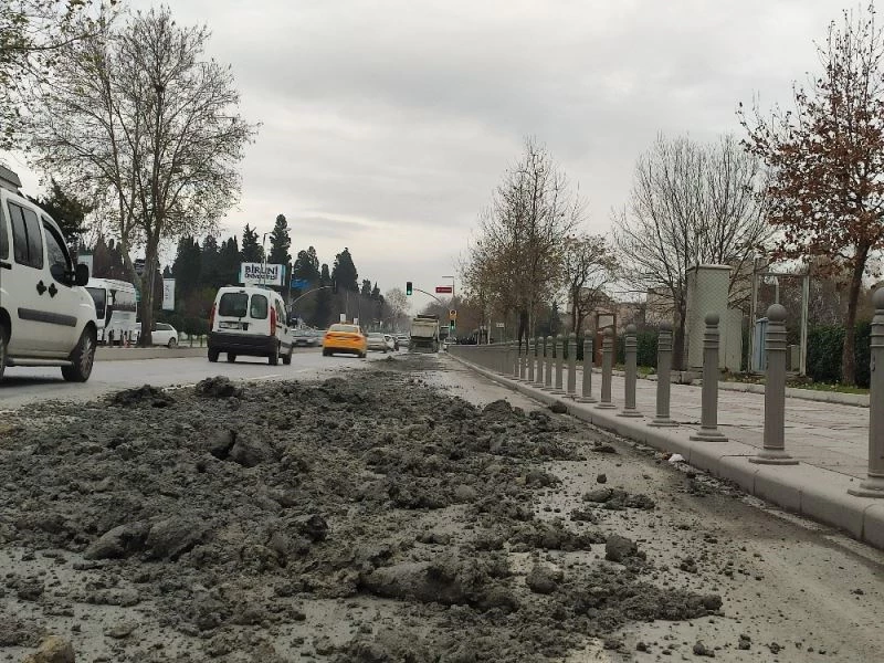 Fatih’te, aşırı yüklü olan bir tırın dorse kapağı açılmasıyla, yola çamur döküldü. Yaklaşık 200 metre boyunca dökülen çamur, kazaya davetiye çıkardı.