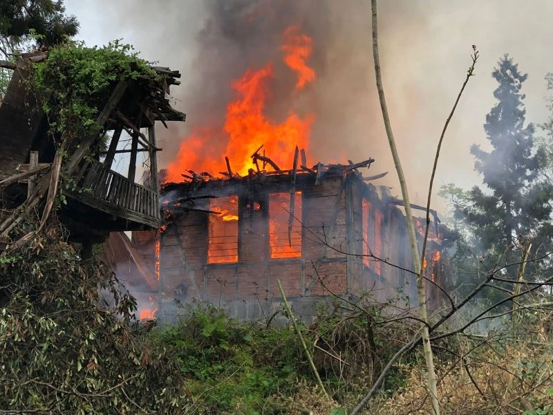 Rize’nin Pazar ilçesinde çıkan yangında asırlık konak yanarak kül oldu.