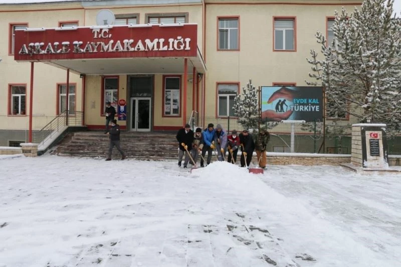 Sabah saatlerinde başlayan yoğun kar yağışı sonrası Aşkale Belediyesi ekipleri kar temizleme çalışmalarına başladı.