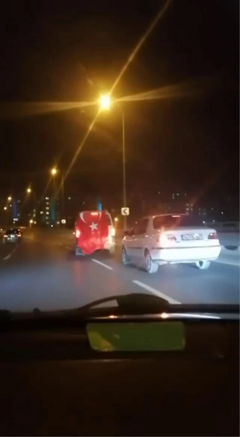 Olay Arnavutköy’de dün akşam saatlerinde yaşandı. Edinilen bilgiye göre, asker eğlencesi sonrasında yapılan konvoyda Hadımköy yönünde ilerleyen bir grup araç, 3 şeritli yolda tehlikeli hareketler sergiledi. Aynı yolda seyir halinde olan başka bir araç sürücüsü duruma tepki gösterdi. Tehlikeli hareketler yaparak ilerleyen araçlar cep telefonu kamerası ile saniye saniye görüntülendi. Görüntülerde, araçların zikzak çizerek ilerlediği ve yan şeritlerde ilerleyen araçları tehlikeye soktuğu görüldü.