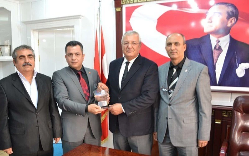 Düziçi Belediye başkanı Ökkeş Namlı`da ziyaretin anısına ASKF temsilcisi Alim Koca`ya Belediyenin hazırlattığı Hizmet Anısı plaketi verdi.