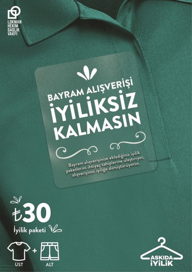 Boyner, bu bayramda Askıda İyilik hareketini büyütmeyi ve müşterilerinin katkısıyla daha çok ihityaç sahibine ulaşmayı hedefliyor. Yapılan açıklamaya göre şirket , COVID-19 salgını nedeniyle evde olduğumuz bu dönemde daha çok iyilik severin projeye katkıda bulunabilmesi ve buna bağlı olarak yapılacak bağışlardan daha çok ihtiyaç sahibinin yararlanabilmesi için Askıda İyilik paketlerini internet mağazası boyner.com.tr‘ye taşıdı. İyilik severler, Askıda İyilik paketleri ile ihtiyaç sahiplerine giyim desteğinde bulunabiliyor. Satın alınan her Askıda İyilik paketi için Boyner de aynı oranda katkı sağlıyor. Alt ve üst giyimden oluşan Askıda İyilik paketleri Lokman Hekim Sağlık Vakfı aracılığıyla ihtiyaç sahiplerine ulaştırılıyor.