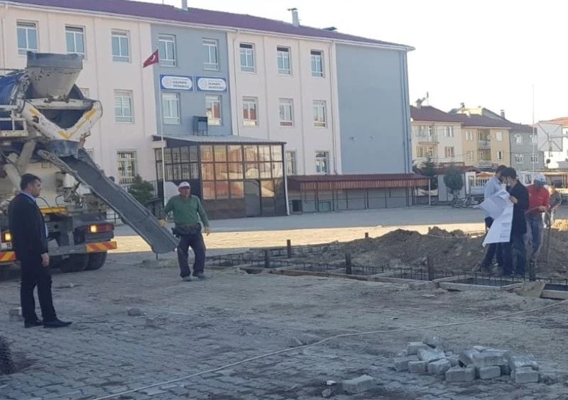 Cumhuriyet Mahallesi, Çalköy Caddesinde bulunan Aslanapa İlk ve Ortaokul bahçesine "çok amaçlı oyun alanı" beton atma çalışmalarını yerinde inceleyen Belediye Başkanı Gökhan Gürel çalışma ekiplerine çalışmalarında kolaylıklar diledi.