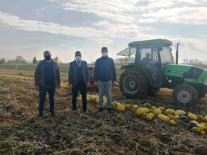 Kütahya’nın Aslanapa ilçesinde alternatif ürün denemeleri kapsamında ekilişi yapılan çerezlik kabakların hasadının yapıldığı bildirildi.