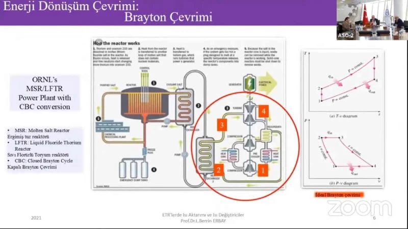 Ankara Sanayi Odası tarafından, Türkiye’de nükleer santral kurulacağı haberinin ardından sanayiciler olarak katkıda bulunma amacıyla 4. Nesil Nükleer Reaktör Teknolojileri toplantıları gerçekleştiriliyor. Bu kapsamda 4. Nesil Nükleer Reaktör Teknolojileri toplantısının beşincisi, ergimiş tuz reaktörlerinde ısı aktarımı ve bu reaktörlerde kullanılan ısı değiştiriciler konusuna odaklanan gündemi ile gerçekleştirildi. Video konferans yöntemiyle düzenlenen toplantıya Ankara Sanayi Odası Başkanı Nurettin Özdebir’in yanı sıra Eskişehir Osmangazi Üniversitesi Makine Mühendisliği Bölümü’nden Prof. Dr. Berrin Erbay ve çok sayıda sektör temsilcisi ile ASO üyesi katıldı. Toplantıda Prof. Dr. Erbay, 4 ana başlıkta, ergimiş tuz reaktörlerinde ısı aktarımının yapılması için gerekli olan çevrimler, ısı değiştiricilerin söz konusu çevrimlerdeki rolü, ergimiş tuzların özellikleri ve ergimiş tuz ısı değiştiricilerinin tarihsel örneklerini ele aldığı kapsamlı bir sunum yaptı.