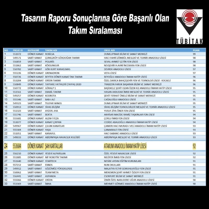 Gaziantep’te gerçekleştirilecek organizasyona İHA kategorisinde 895 başvuru yapıldı. 19 Mayıs’ta açıklanan sonuçlara göre Atakum Anadolu İHL "Şah Kartallar" takımı başvurusu kabul edildi ve takım Samsun’da “tasarım raporu” aşamasına geçen 3 takımdan biri oldu.