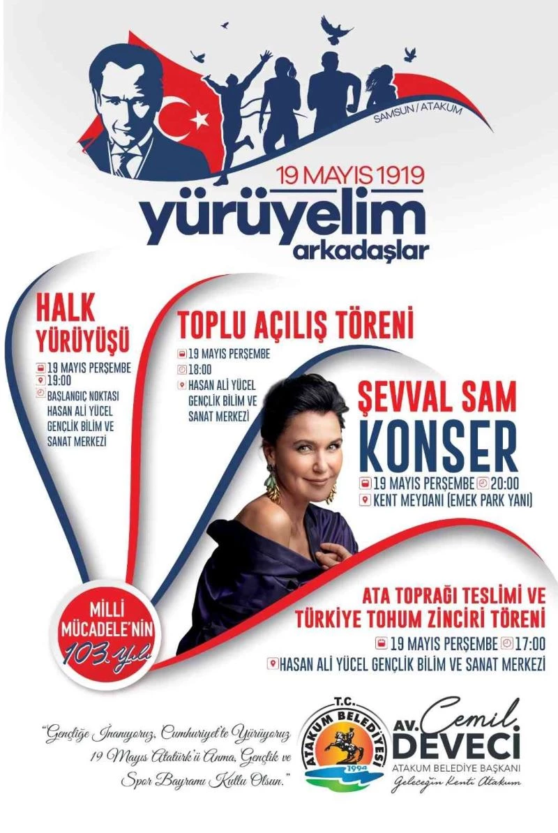 Milli bayramları ilçe genelinde coşkuyla kutlayan Atakum Belediyesi, 19 Mayıs Atatürk’ü Anma, Gençlik ve Spor Bayramı’nın 103. yıl dönümünde “Yürüyelim Arkadaşlar” sloganıyla gerçekleştireceği etkinliklerle unutulmaz bir bayram daha yaşatacak. CHP Genel Başkan Yardımcıları Seyit Torun, Faik Öztrak ve bölge milletvekillerinin katılacağı toplu açılış töreninin yapılacağı kutlamalarda, 19 Mayıs’ta saat 19.00’da “Halk Yürüyüşü” de gerçekleşecek. Lozan Caddesi’nde başlayıp Atakum Kent Meydanı’nda sona erecek yürüyüşün ardından saat 20.00’de sevilen sanatçı Şevval Sam sahneye çıkacak.