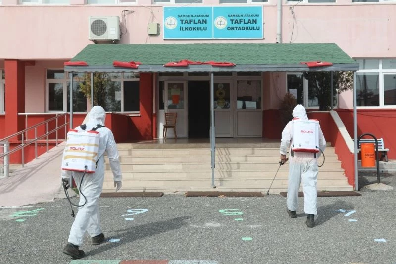 SAMSUN (İHA) – Korona virüsü pandemisinin ilk gününden itibaren kentteki dezenfeksiyon çalışmalarını aralıksız sürdüren Atakum Belediyesi hijyen timleri, 12 Ekim’de yüz yüze eğitime başlayacak olan 2, 3, 4, 8 ve 12’nci sınıflar için Atakum’daki 24 okulu dezenfekte etti.