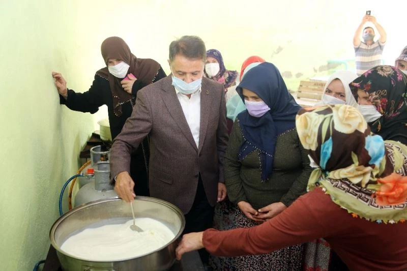 Kırsal mahallelerde üreten kadının, hareketsizlikten kaynaklanan hastalıklarla vedalaşacağına dikkat çeken Başkan Cemil Deveci, “Çok değil, 2-3 inek, 8-10 tavuk bir evi bakmaya yetiyor. Zaten tarlalarınız var. Sizin kireçlenmenizin, ağrınızın ilacı iki inek, doktor değil. Böyle bir çalışmanın içerisine girdiğinizde ne diziniz ağrır, ne beliniz ağrır, hiçbir şey olmaz. İnek damda aç, susuz bağırırken siz diziniz ağrıyor diye aşağı inmeyecek misiniz? Sürünerek de olsa ineceksiniz. İki inek sizin ağrınızı da sızınızı da unutturur, bütçenize de katkı verir. Hafta sonları torunlarınız süt içmek, yumurta yemek için buraya gelir. Çünkü o gezen tavuğun yumurtasının lezzetini şehirde bulması imkansız. Torunlarınıza kavuşmak istiyorsanız, hiç olmazsa hafta sonları kavuşmak istiyorsanız burada uzman arkadaşlarımızın yaptığı çalışmaya uyun. Olabildiğince gençler, genç kızlar bu işe dört elle sarılsın. Burada ürettiğiniz ürünü yarın şehirdeki tüketiciye biz ulaştıracağız. Garantisi de biz olacağız. Burada örneğini kurduğumuz gibi bir tesis oluşturacağız. Birbirine yakın köyleri bir araya getirip grup yolları üzerine mandıralar kuracağız. Sizin sütünüzü evinizden alacağız. İşleyip peynir ya da başka bir mamul haline getirerek götürüp şehirde satacağız. Verdiğiniz ürün belli, hesap belli, kitap belli, haftanın, ayın sonunda ödemeleriniz hesaplarınıza yatacak. Bu size hayal gibi geliyor ama bir yerden başlamamız gerekiyor. Atatürk Samsun’a çıktığında ortada ülke yoktu, asker yoktu. 18 arkadaşıyla yola çıktı, bu ülkeyi kurdu ve bize teslim etti. Biz de onu yaşatalım” diye konuştu.
