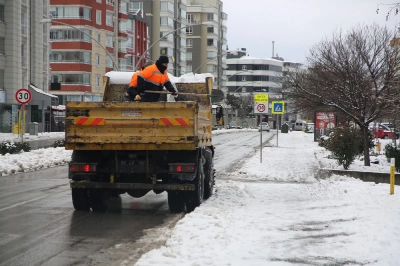 Sabahın ilk saatlerinde ise kent merkezinde yaya yoğunluğu yaşanan caddelerde kaldırım tuzlama ve kar küremesi çalışmaları gerçekleştiren ekipler, yaya kaldırımlarında yurttaşların kayıp düşme riskine karşı güvenli hale getirdi. Gündüz saatlerinde zaman zaman şiddetini artıran kar yağışının ardından buzlanma ihtimaline karşı solüsyon ve tuzlama çalışmalarının devam edeceği öğrenildi. Diğer yandan, Atakum Belediyesi Paylaşım Merkezi ekipleri de Çatalçam, Güzelyurt, Kamalı pazaryerlerinde pazaryeri esnafına ve sokaktaki yurttaşlara sıcak çorba ikramını sürdürdü.