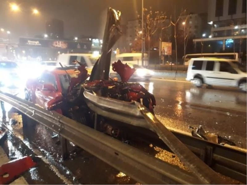 Ataşehir’de motosiklete çarpan otomobil bariyere girdi: 1 yaralı