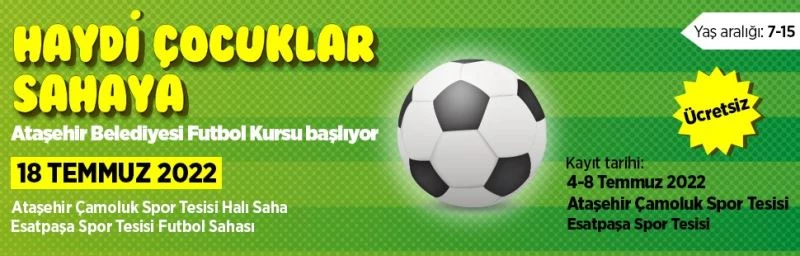 Ataşehir Belediyesi’nin çocukların yaz tatillerini sporla birlikte daha eğlenceli geçirmeleri için çeşitli alanlarda hazırladığı “Yaz Spor Eğitimleri” başladı. Çocukların ve gençlerin büyük merakla bekledikleri futbol eğitimlerine kayıtlar ise 4 - 8 Temmuz’da yapılacak.