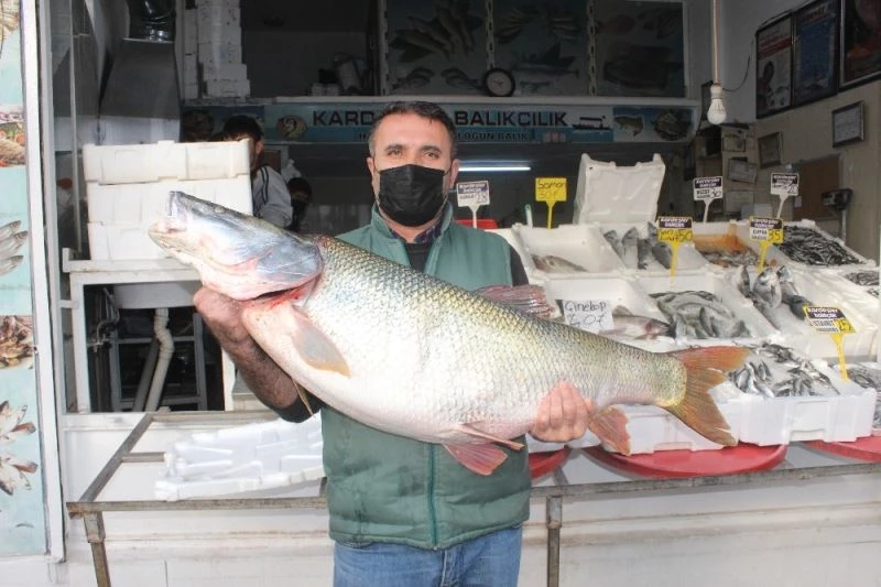 Adıyaman’da balıkçılık yapan Yılmaz Alp, Atatürk Barajı göletinde yakalamış olduğu 1 metre 30 santim uzunluğundaki turna balığını Hocaömer Mahallesi’nde faaliyet gösterdiği balıkçı dükkanında sergiledi.