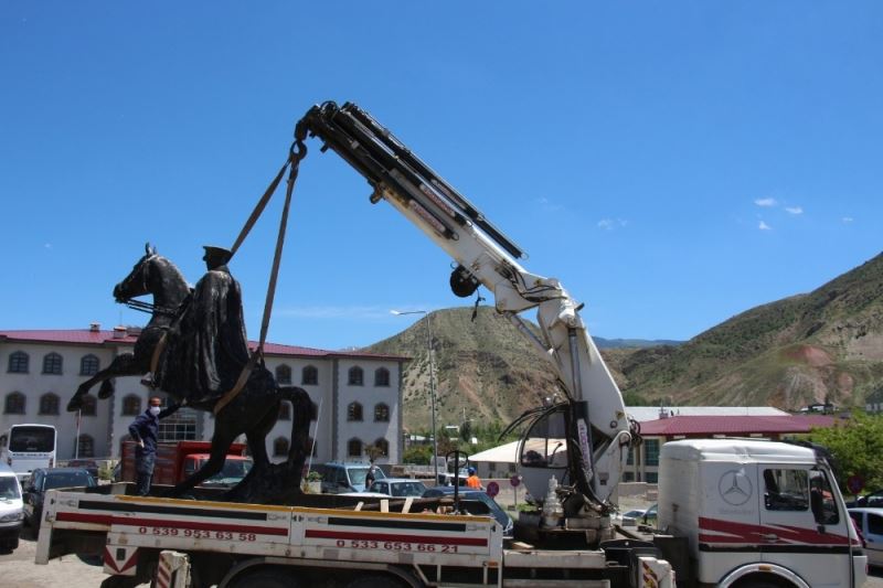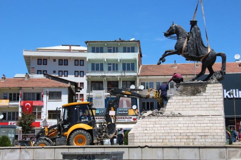 Oltu Hükümet meydanındaki Atatürk heykeli iş makineleri ile 50 metre geriye alındı.