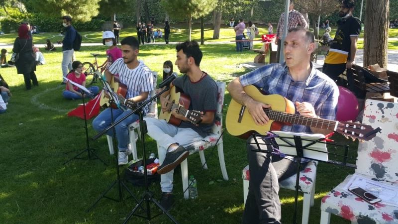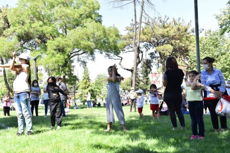 Balıkesir’de korona virüs önlemleri kapsamında sokağa çıkma yasağı uygulanan 18 yaş altı çocuklara izin gününde Atatürk Parkı’nda şenlik yapıldı.