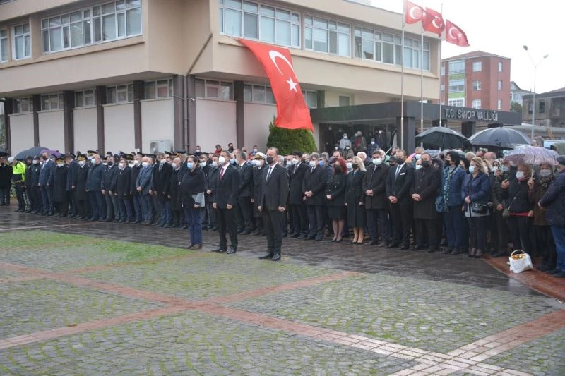 Atatürk’ün hayata gözlerini yumduğu dakikalarda tüm yurtta olduğu gibi Sinop’ta da hayat durdu. Sinop Valiliği önünde yapılan törene Sinop Valisi Erol Karaömeroğlu, Sinop Belediye Başkanı Barış Ayhan, İl Emniyet Müdürü Cahit Şahin, İl Genel Meclisi Başkanı Yakup Üçüncüoğlu, AK Parti İl Başkanı Uğur Giresun, kamu kurumları, sivil toplum kuruluşları ve siyasi partilerin temsilcileri ile öğrenciler ve çok sayıda vatandaş sayıda katıldı.