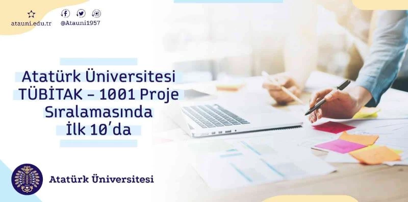 78 üniversitenin 228 projesinin desteklenmeye hak kazandığı TÜBİTAK 1001 Projesi kapsamında 6 projesi kabul edilen Atatürk Üniversitesi ilk 10 üniversite içerisinde yer alma başarısı gösterdi.