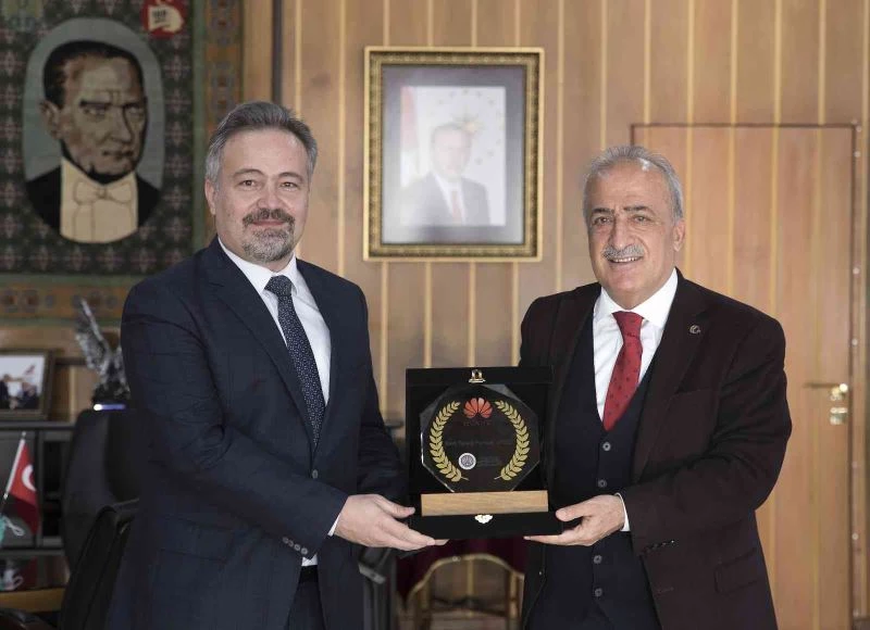 Ödül töreninin ardından Rektör Prof. Dr. Ömer Çomaklı’yı makamında ziyaret ederek üniversite adına aldığı ödülü takdim eden Çavuşoğlu, Atatürk Üniversitesi adını her platformda duyurmanın çabası içerisinde olduklarını aktardı.