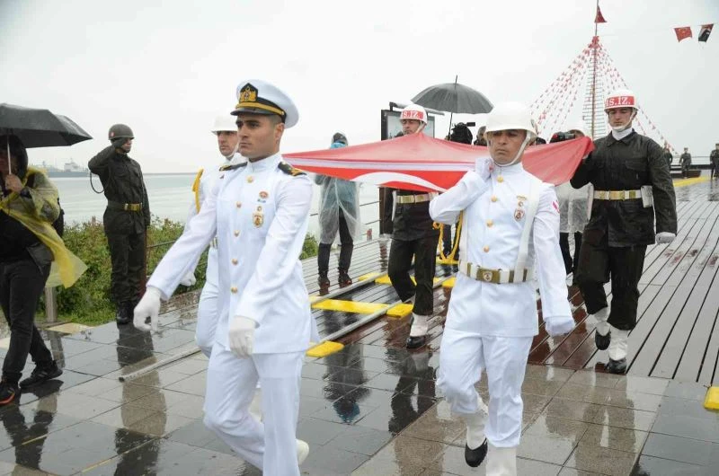 19 Mayıs 1919’da Atatürk’ün Kurtuluş Mücadelesi’ni başlatmak üzere Samsun’a ilk adımını attığı yer olan Tütün İskelesi’nde Atatürk’ün karaya çıkışını temsil eden Türk bayrağı, askerler tarafından karaya çıkarıldı.