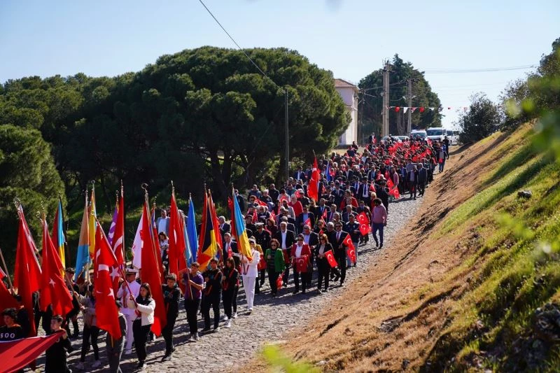 Atatürk’ün ilçeye giriş yaptığı güzergah üzerinden gerçekleştirilen yürüyüşe; Ayvalık Kaymakamı Hasan Yaman, Ayvalık Belediye Başkanı Mesut Ergin, gaziler ve şehit aileleri, siyasi parti ve sivil toplum örgütlerinin temsilcileriyle öğrenciler katıldı.